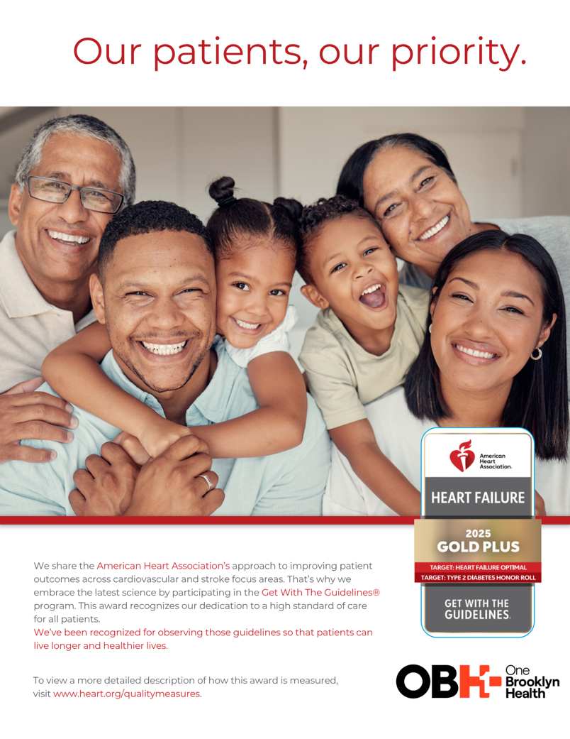 The Division of Cardiology at One Brooklyn Health serves patients across 3 campuses and ambulatory sites. The complement of services encompass preventive, diagnostic & therapeutic. Our team of Board-Certified cardiovascular specialists provide comprehensive cardiovascular care, including Hypertension, Hyperlipidemia, Coronary Artery Disease, Valvular Heart Disease, and management of pulmonary embolism. In addition, our Interventional Cardiology team is available 24 hours a day, 7 days per week for the treatment of heart attacks and pulmonary embolisms.